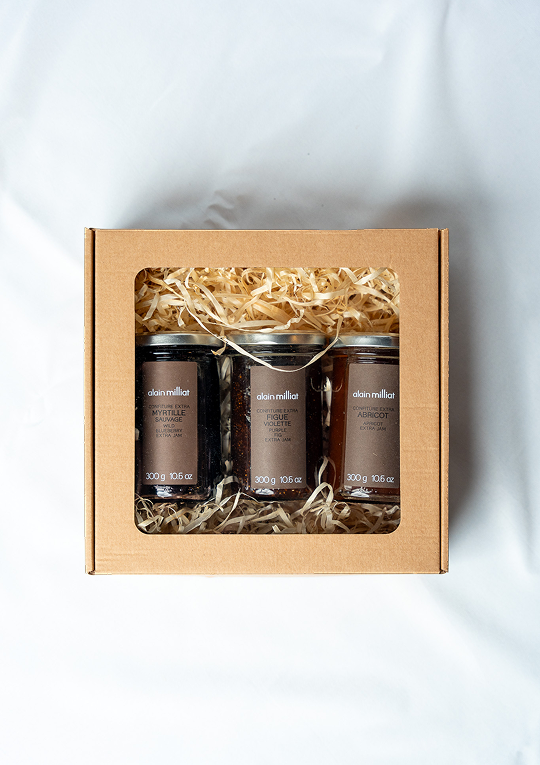 Trijų džemų rinkinys, sukurtas gurmaniškai patirčiai: figos, mėlynės ir abrikosai čia atsiskleidžia pilnu savo skoniu. Tai subtili, elegantiška dovana ir puikus akcentas prie antienos, pašteto ar brandintų sūrių lėkštės.